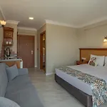 Det bekväma 3-stjärniga Rosy Suites Hotel Kusadası, med utsikt över poolen, ligger ungefär 25 minuter till fots från Kuakmer. Det erbjuder också utomhusbassäng, terrass och rekreationsanläggningar. Gästerna kan koppla av i en takpool och njuta av en underbar atmosfär, i närheten av Green Beach.